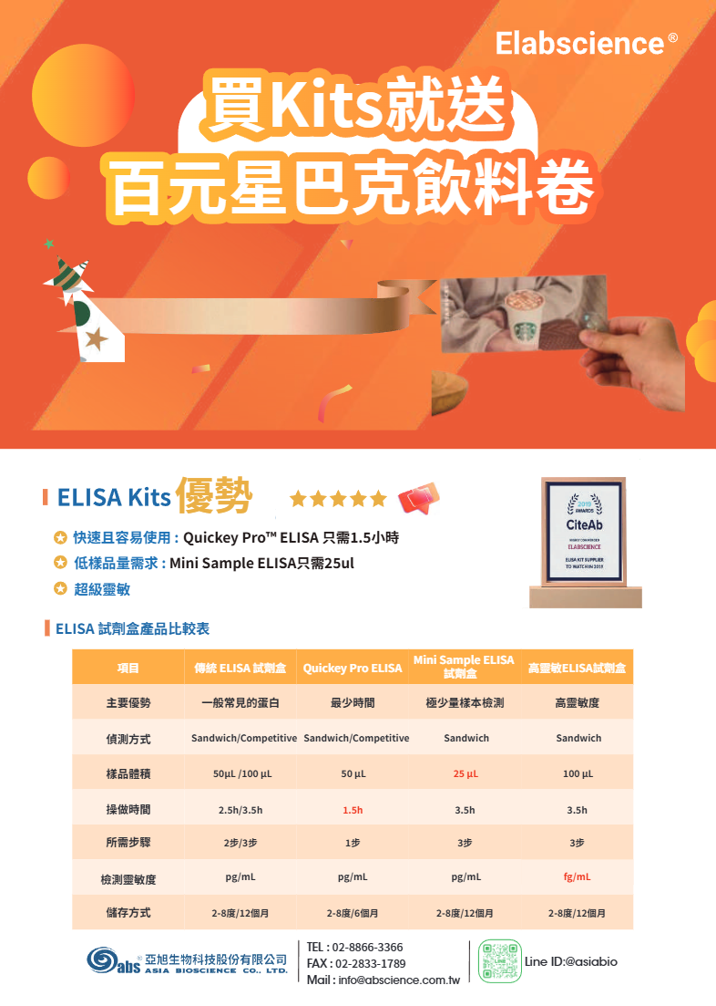 即日起購買Elabscience Kits就送星巴克飲料卷